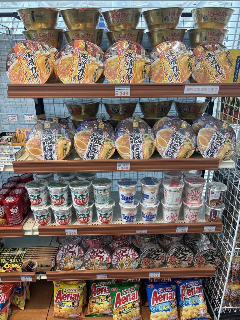 青森ご当地ラーメンには惹かれつつ、船内でラーメンを食べる勇気はなく結局パンやおにぎりを購入。