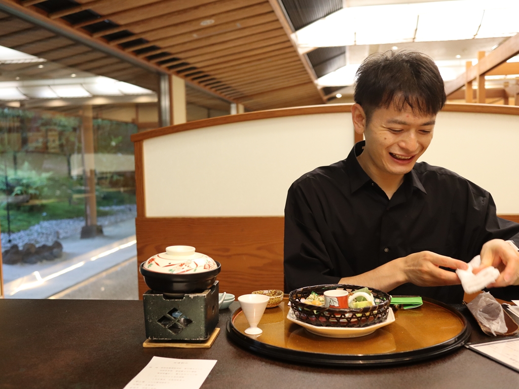 旅館の飯は、ボリューム満点で育ちざかりには最高。食べて飲んで、大満足の一日目。