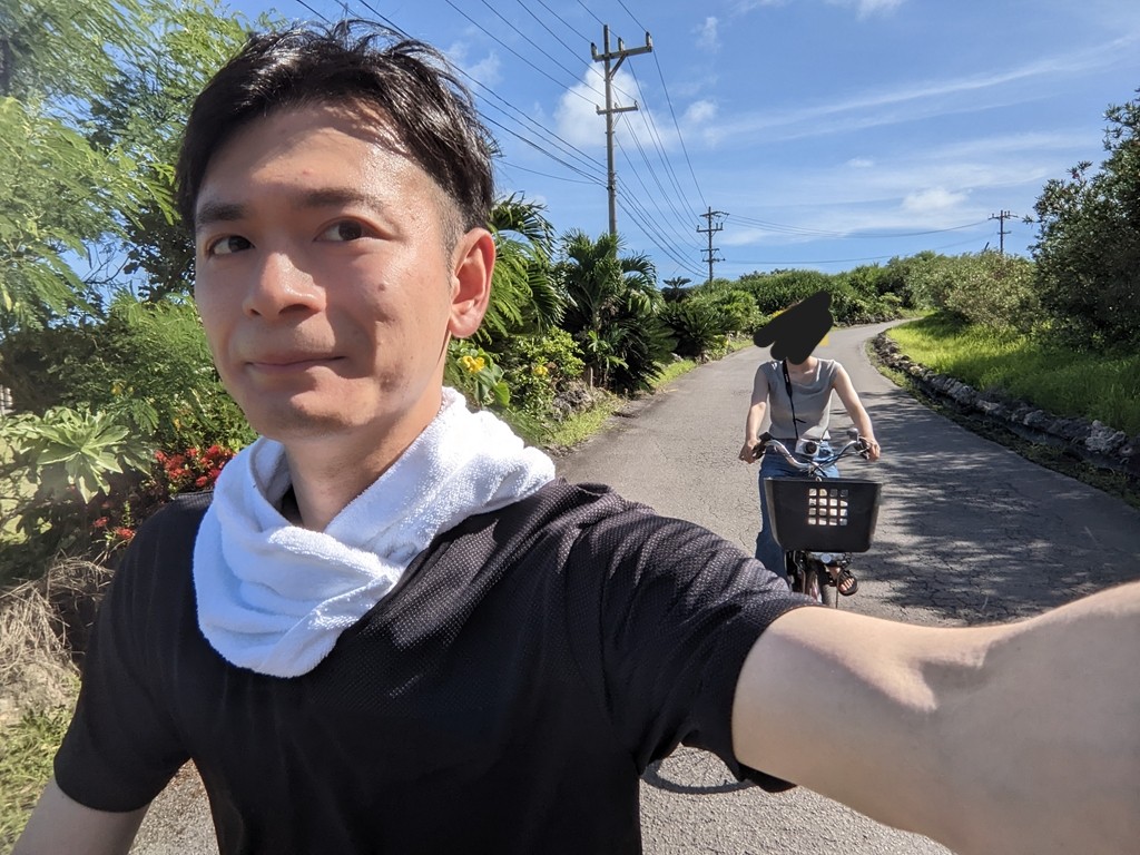 真っ青な空の下走るのはとっても気持ちが良い。まずは島の中心地へ向かう。