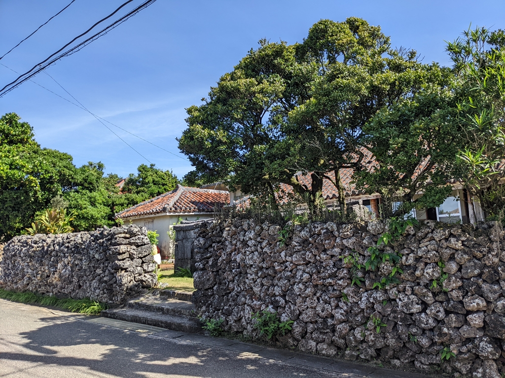 島の中心には、ドラマ「ちゅらさん」の舞台となったこはぐら荘を始めとした低い石垣に囲まれた古民家が立ち並んでいる。