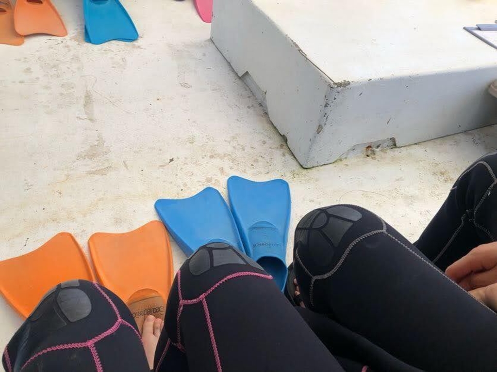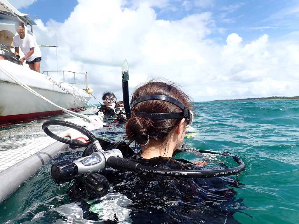 ようやく潜水スポット。だいたい10人ほどいたツアー客のうち、私は一番目に潜水して海底で待機。