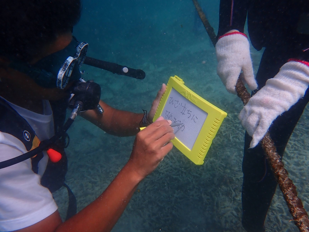 水中ではこうやって筆談。ぐらんぶるの世界を少しだけ味わうことができた。