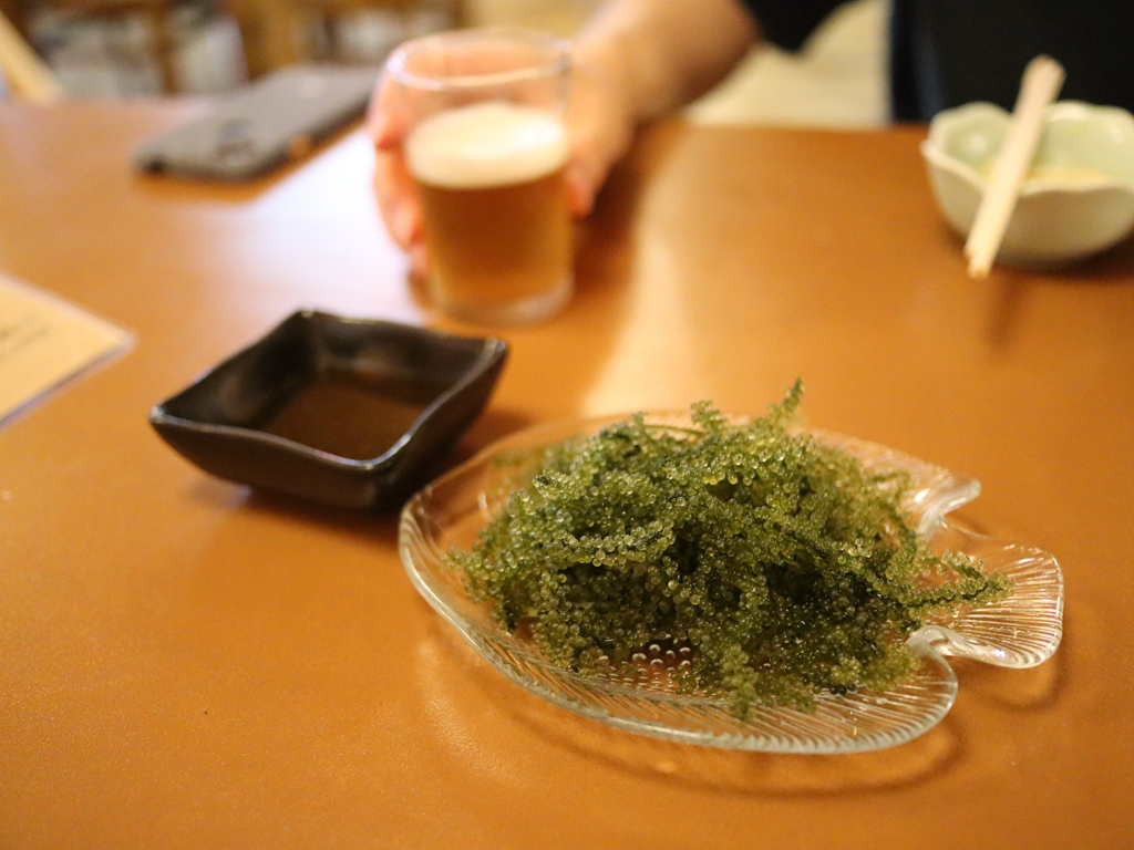 海ブドウに天ぷら、ほかにも色々注文して、正直食べ過ぎなくらい食べてしまった。どれも美味しかったな。